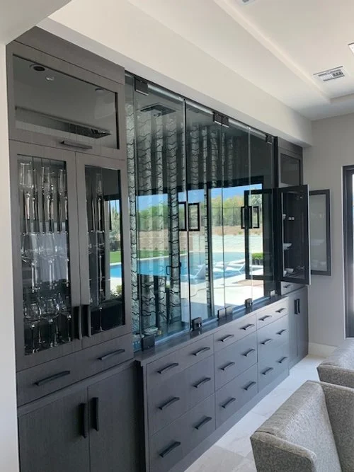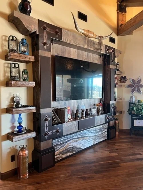 Entertainment Center (12x12 timber w/ stainless steel trim and backlit onyx stone base)