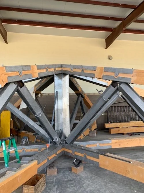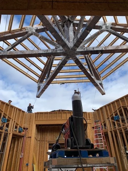 Large Hex Beam for Residential Home 1 (12x12 timber and custom formed hex beams)